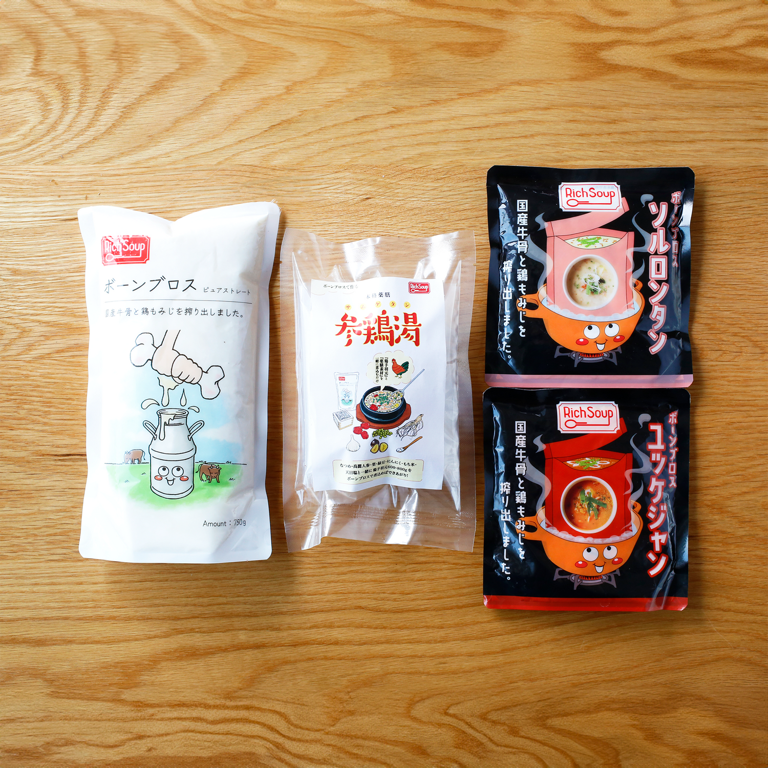 <ボーンブロス750g×1・参鶏湯キット×1・ユッケジャン×1・ソルロンタン×1>